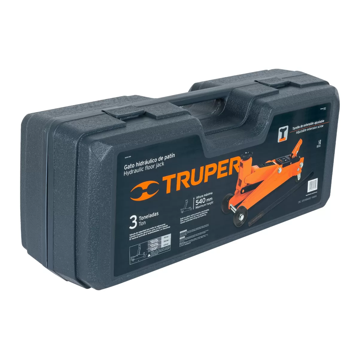 Gata hidráulica tipo patín 3t, 57 movimient. , maletín, Truper 14947