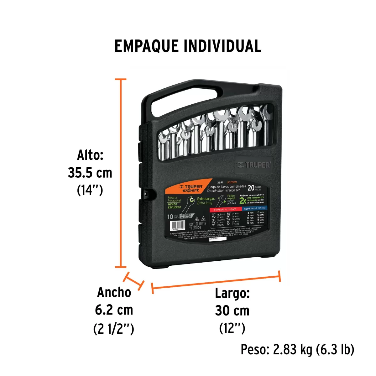 Jgo 20 llaves combinadas extralargas pulidas std y mm,EXPERT